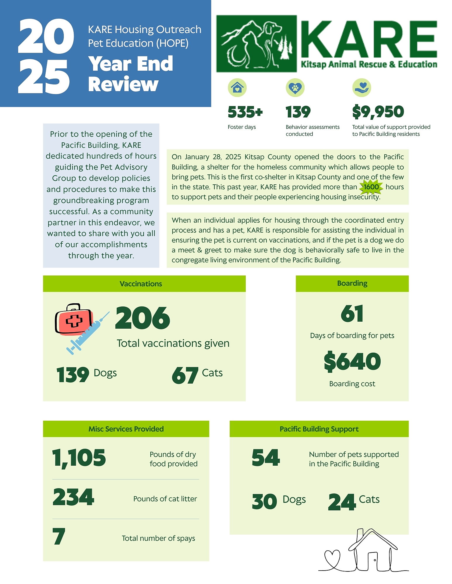 This year we are hoping to raise funds to replenish our KARE Medical Grant program which helps our low income neighbors with emergency veterinary bills. In addition our HOPE program has covered costs of veterinary medications, emergency treatment, tests as well as free vaccine clinics for many of our co-shelter animals and those dealing with housing instability.