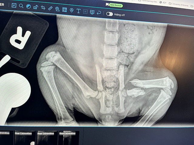 Fast forward two weeks. The orthopedic vet and his family decided to adopt Buster and offered to pay for the surgery to remove the leg. BUT, when they took Buster in to get updated x-rays the leg has slipped back into place and was mending.